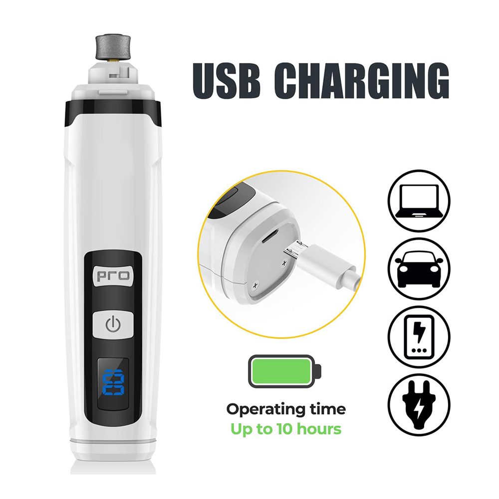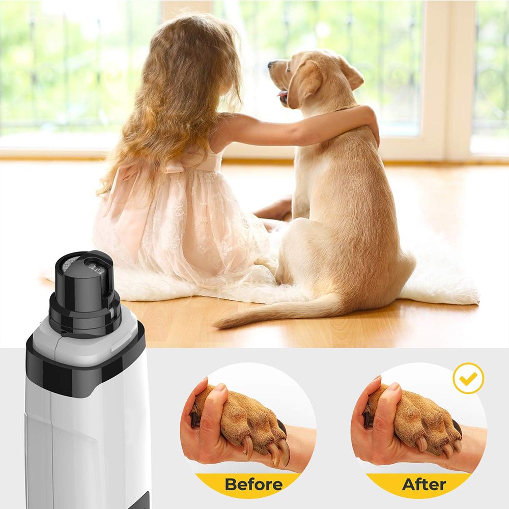 [Safe, Effective & Precise Trimming]This dog nail grinder uses an advanced Diamond Bit Grinder & Powerful Motors to deliver the safest, most comfortable pet claw grinding. Compared with manual dog nail clippers, our pet nail grinder will avoid over cutting nails or hurting your pet. Recommended by veterinarians and pet grooming professionals, painlessly and precisely trim your pet's nails anywhere.