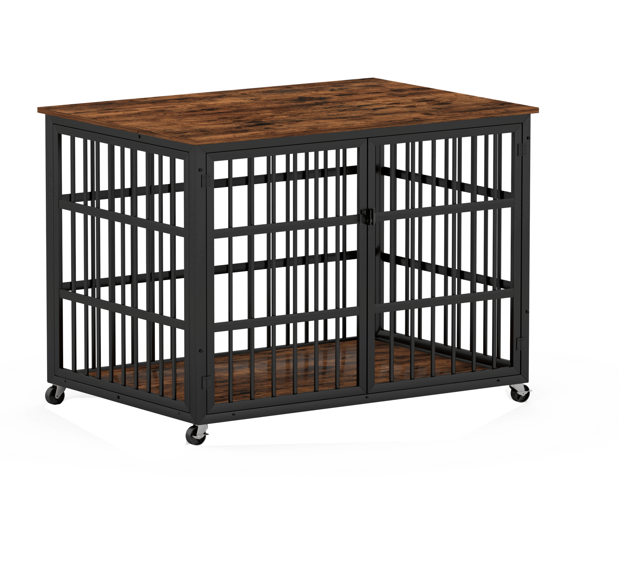 Furniture style dog crate wrought iron frame door with side openings, Rustic Brown, 43.3''W x 29.9''D x 33.5''H.