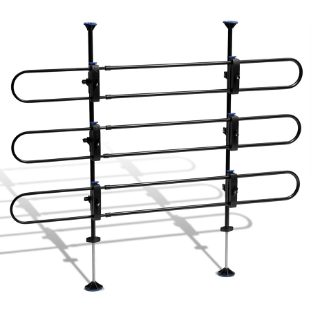 This pet barrier improves safety by keeping your dog in the back and reducing driver distraction. Special features eliminate the annoying rattling sound that comes with other designs, so you can enjoy a truly peaceful trip. Many pet barriers just won't stay in place, but this design includes rubberized top and bottom caps to firmly grip the floor and headliner and prevent slipping. Plus, caps won't fall off when the barrier is disassembled.